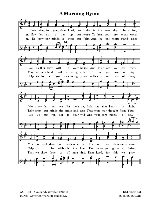 In early August 2006 I got to thinking about the way we approach corporate worship in our churches. Â So often we arrive with our minds and hearts in a tangle of thought and emotion carried with us from the hectic pace we set for ourselves from day to day; the product of the many slights and hurts we have experienced during the week. Â Even as we look around at those gathered with us to worship, it is so easy to let ourselves dwell on those people rather than the one we all worship. Â